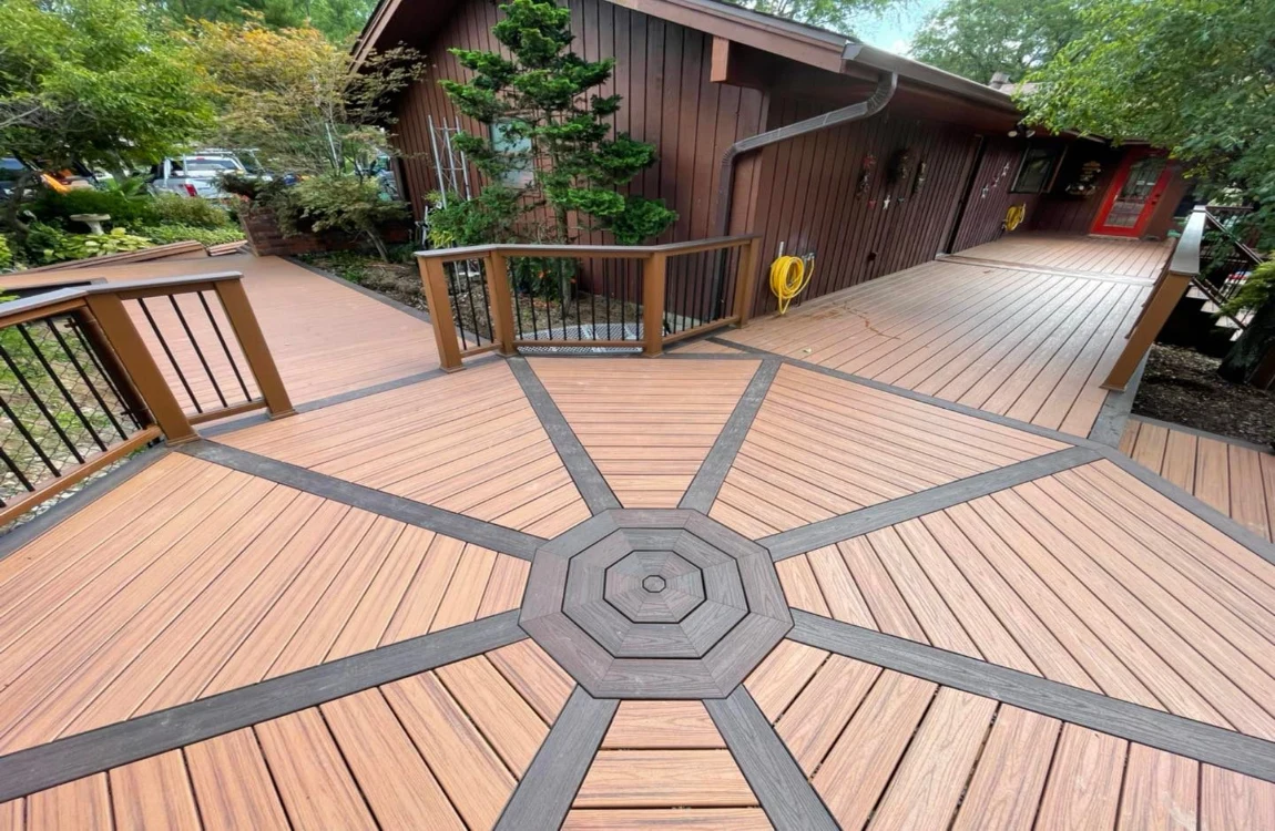 Wood decks (like cedar or pine) offer natural beauty at a lower upfront cost but require more maintenance. Composite decks (like Trex® or TimberTech®) are low-maintenance, long-lasting, and resist fading, warping, and termites.